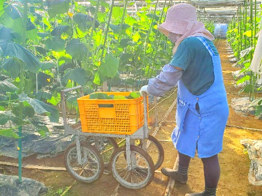 胡瓜の収穫、仕立て作業、箱詰め作業などをお任せいたします。重労働は少なめのため、30代~70代と幅広い年齢層が活躍しています。女性も多数活躍しており、体力に自信がない方や農業が初めてという方でも安心して働ける環境ですよ。誰でも簡単に取り組め、それぞれが判断できるようにし、効率よく作業を進められる環境を整えています。"