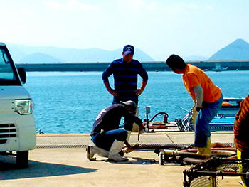 潮を見て漁に出るので一概には言えませんが、10日漁に出て(家には毎日帰ります)、3日陸での作業、2日休みというサイクルの働き方です。