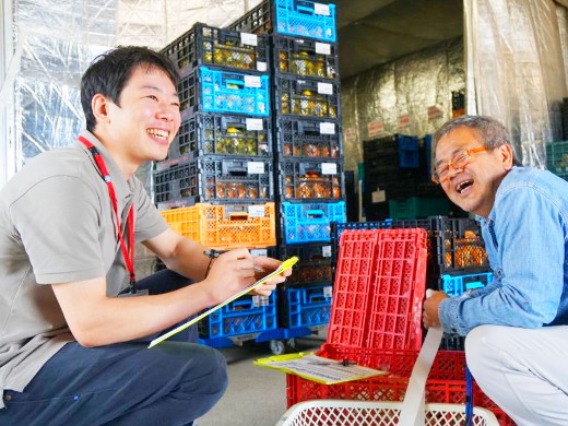 集荷支援は、生産者一人ひとりの想いを届けるため、野菜一つの規格・価格の相談から来季の栽培予定の相談など、良きビジネスパートナーとして生産者の方に寄り添います。
