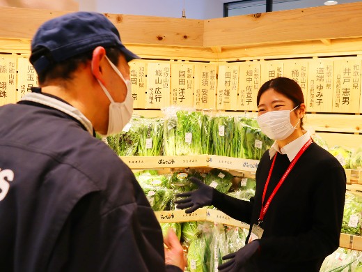 店舗支援は、生産者と直接繋がれる利点を活かし、『顔が見える』野菜として、新たな売場展開を提供し、スーパーの売場全体の魅力を引き上げる取り組みを行います。