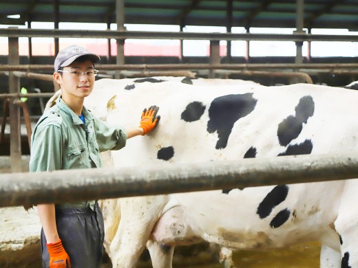牧場の仕事が初めて、という方はもちろん不安なことだらけだと思います。だからこそ、当牧場ではゆっくりと自分ができることを一生懸命行っていくことを大切にしています。自分のペースで得意なことを見つけ、スタッフみんなでカバーし合いながら成長していきましょう!苦手なことを無理強いはしません。一生懸命目の前の仕事に取組み、自信を持って取り組んでいくこと。これが、ほかのスタッフにも良い影響を与え、雰囲気の良さや、牛の変化や病気の兆候に気付く気持ちのゆとりになると考えています。