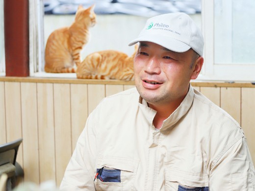実は、牧場の事務所内にはネコが10匹以上います。自由にくつろいでいるときもあれば、人が入ってくるとすり寄っていくときも。みんなの癒しです。当牧場の雰囲気は、このネコたちの影響もあるせいかどこかゆったりのんびりしています。