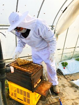 特にいちごの栽培は創業時より味に強いこだわりを持ち、繊細な肥培管理と良質な土づくりを大切にしています。形が良いいちごを作るために、大切なのは花が咲いたら行う受粉作業。この受粉作業を、より自然に近い形で行ってくれるのがミツバチです。当社では、ミツバチを自分たちの手で育てようと養蜂にも取り組んでいます。