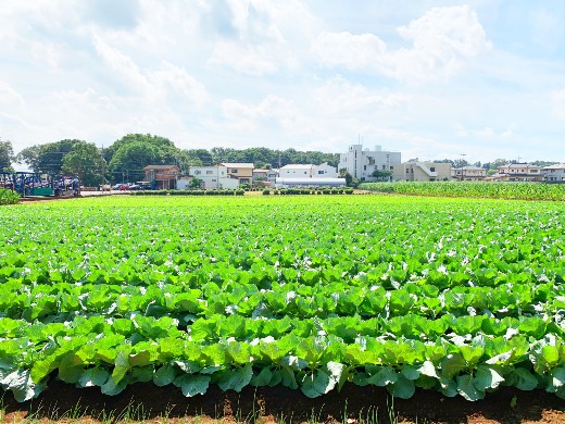 農園の位置する地域は、都心近郊に位置しており、埼玉県内における葉物野菜・根菜類等の一大産地として、また、狭山茶の主産地として、消費者の皆さまに安心で安全な農産物を提供しています。