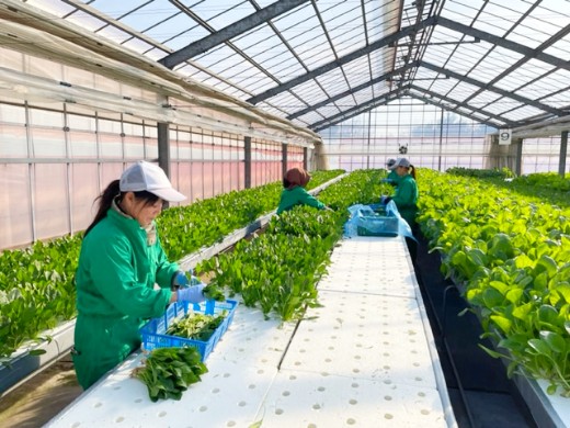 最新の太陽光利用型ハウスでの水耕栽培と、畑での栽培を行っており、ほうれん草・ルッコラ・小松菜・長ねぎ・小ねぎ・玉ねぎ・大根のほか、お米や麦を安心、安全に生産しています。