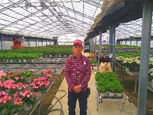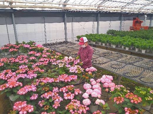 扱っているのは、美しい色が魅力のポインセチアとアジサイ。ピンク、ブルー、ホワイト、イエロー、パープルなどさまざまな色を育てています。