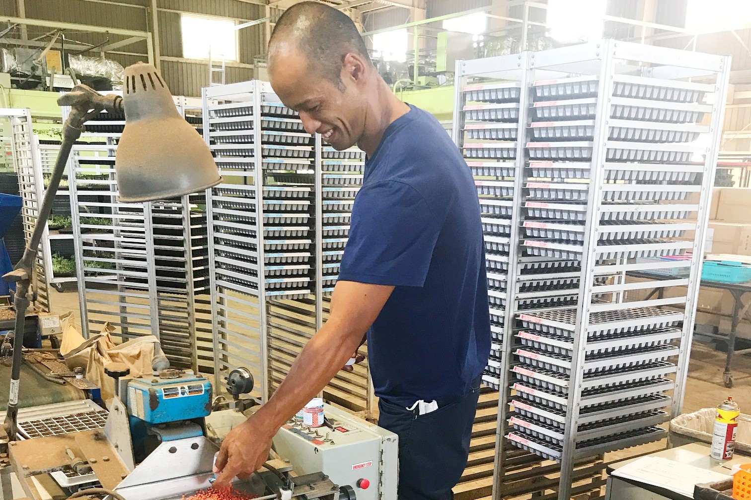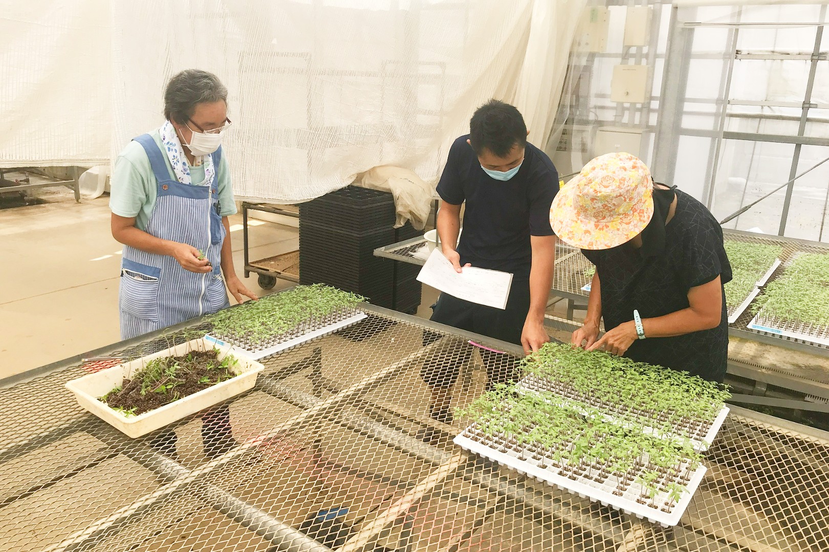 苗は工業製品ではなく、タネをまいてから日々の気象条件に合わせて正確な栽培管理を行い、一つ一つ丁寧に育てて作るものです。そのため、効率よく均一な良い苗を育てるためにはチームワークが大切。農家の手元に届いた際に喜んでいただける苗を生産することが私たちの使命です。