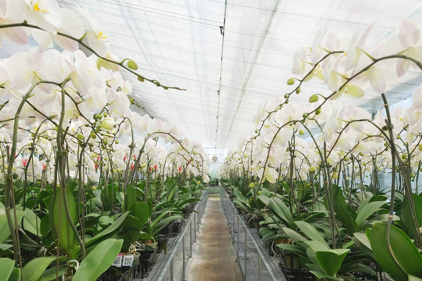 当社は胡蝶蘭を中心に、生花の生産から加工、卸売、個別販売まで広く展開している会社です。品質にこだわり台湾から高品質なブランド苗を輸入し、お客さまのために専門の職人が一つ一つ丁寧に、熱い心と卓越した技術で育てています。