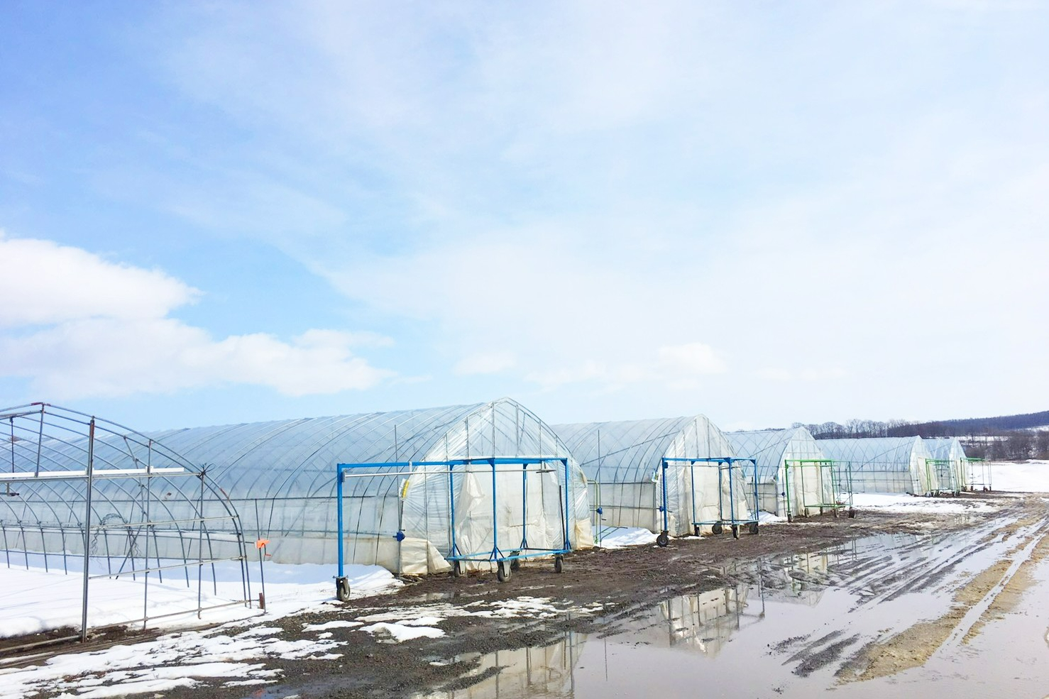 写真に写っているのは、玉ねぎの苗を育てる育苗(いくびょう)ハウスです。春先には、元気になるよう大切に育てた苗を、機械で畑に植え付ける作業を行います。
