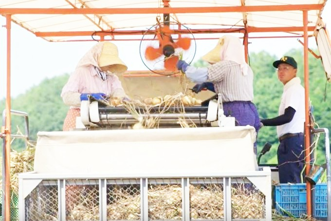 収穫した玉ねぎに混ざった石を機械上でスライドして移す、という作業が時々あり力が要りますが、一時的なものですので心配いりません。