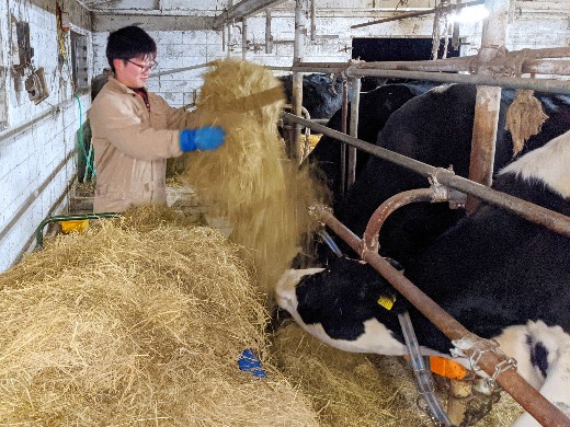 入社後は技術指導や酪農に関する知識のレクチャーを行い、時間に余裕のある時は地域の農家との交流や牧場視察も行っていますので、しっかりと酪農を仕事ととして身に着けるのに最適な環境です。ゆくゆくは酪農ヘルパーも目指していただけます。
