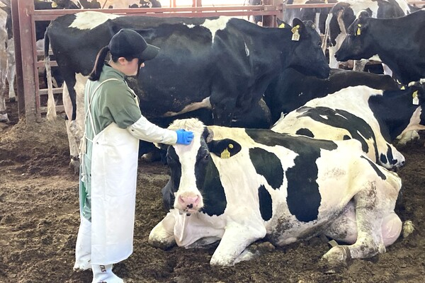 搾乳業務以外に、子牛を生むために必要な受精卵の移植業務、受胎管理、健康管理を行う「診療・繁殖部門」、子牛の分娩介助を行う「分娩部門」などのお仕事もあります。必要なのは牛たちへの思いやりと、ストレスない生活環境づくりです。