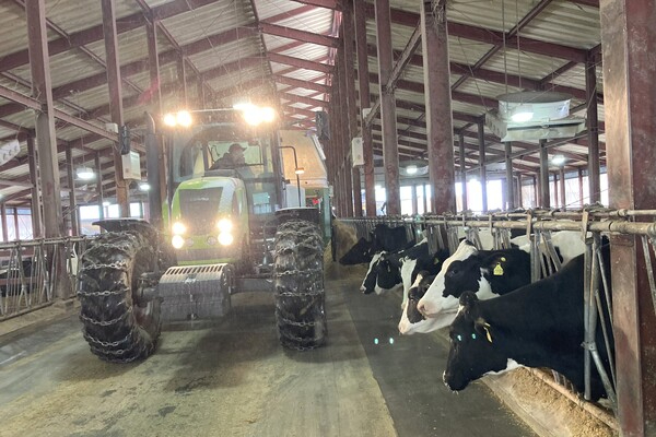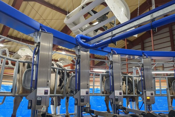 酪農業といえば牛乳ですね!当牧場では牛1あたり1日3回、早番、遅番シフトに分かれて搾乳をしています。搾乳機械もパラレルパーラーのほか、日本でもまだ導入の少ないロータリー式自動搾乳ロボット「AMR」も稼働を開始しました。
