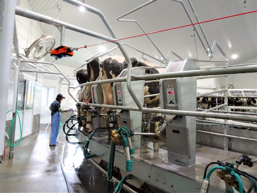 ロータリーパーラーという最新の機械を導入しており、一度に50頭の搾乳をすることができます。わざわざ人が動く必要がなく、体力的な負担が軽減されています。また、効率的に作業が終わり時間短縮にも繋がる為、牛の負担やストレスも軽減され、生乳の質にも良い影響を与えています。