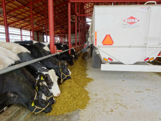 現在約580頭の搾乳牛を育てています。多くの育成牛は町内の預託牧場(生後3ヶ月~分娩する2ヶ月前までの約2年間育てる牧場)へ預け、初妊牛になって戻ってきます。また、エサはTMRセンターより供給されているため、飼料作りなどの仕事はありません。その分牛と向き合っています。