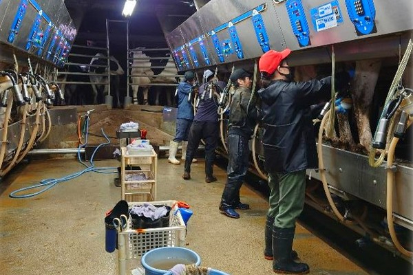 入社後はまず水槽掃除、エサやり、搾乳、ミルカー掃除からスタート。3~4日あれば慣れていただける仕事内容です。入社5年目のスタッフが丁寧に優しく指導しますので、未経験の方もご安心ください。搾乳のような、大人数で作業をする場では全員で指導いたします。ご希望があれば、重機に乗って堆肥の切り返しに挑戦していただくことも可能です。