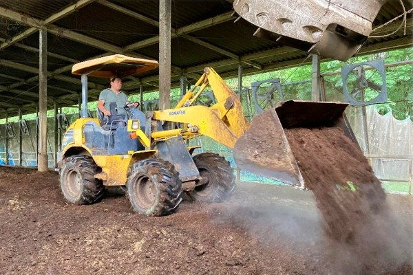 地域とのふれあいや酪農の理解を啓発する一環として、牛の排泄物から作った堆肥を家庭菜園や学校庭園へ一部無料で供給しています。また、管内の小中学校からの牧場見学の受け入れや、学校行事の一環として高校生が7日間泊まりで酪農実習に来ることも。常に地域に貢献できる牧場でありたいと考えています。