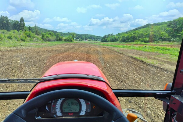 子実トウモロコシの効率的な生産のため大型トラクターを導入し、5haの広い農地で大規模栽培。農地管理だけでなく、2024年以降はグレーンウイスキー製造に関する業務にも携わっていただきます。