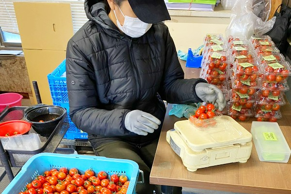 土づくりから収穫、袋詰めまですべての作業に携わっていただきます。直売所やミニトマトの自動販売機も設置していますので、そちらの管理等のお仕事も。
