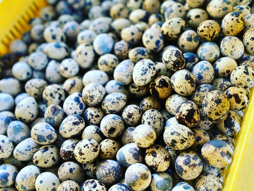 うずらのエサは良質で高タンパクの飼料を120℃で熱加圧力処理。そこに、うずらの健康にいい有用菌(乳酸菌や納豆菌など)、さらには卵殻を硬くしてタネ卵のふ化率を高める「海洋土」を混ぜた飼料を与え、安心・安全で栄養価の高い卵生産に取り組んでいます。