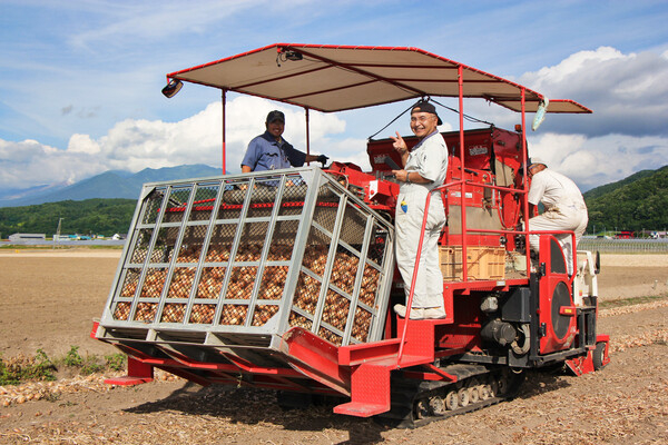 大規模生産のため農作業の機械化を推進。これにより効率よく野菜の生産を行い、生産量を伸ばしています。例えば以前は人の手で行っていたスイートコーンなどの収穫を、地元の機械メーカーと協力して開発した自動収穫機を使用しています。