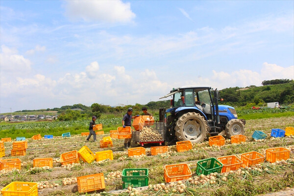 また、収穫後天日で干してすぐに出荷するたまねぎは、甘味たっぷりでジューシーなのが自慢。取引先様が仕入れに困らないよう、大量出荷、安定供給を心がけています。