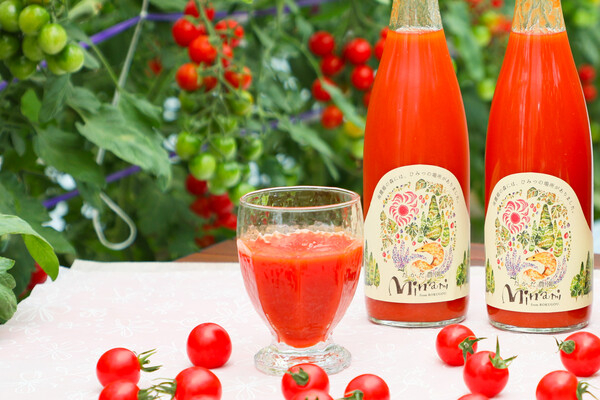 当農園オリジナルブランドのミニトマト「Minami」だけを原料とした100%ストレートジュースも製造しています。塩、砂糖、添加物、水などはいっさい入っておらず、野菜嫌いのお子様でも飲めてしまうほど青臭さのない、優しい味わいのジュースに仕上がりました。オンラインショップでも販売しています!