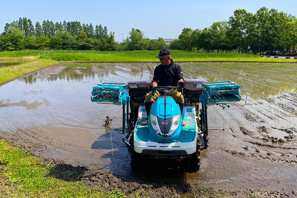 生産性アップの取り組みとして、稲作生産におけるドローンを使った除草剤散布や、機械化による水稲苗の生産を実施しています。将来的には、自動農機具を取り入れたスマート農業にも取り組みたいと検討しています。