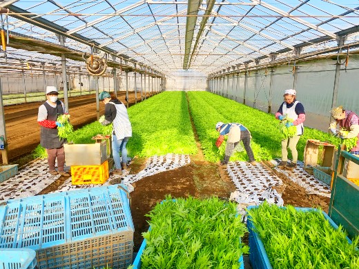 現在は、水菜、ネギ、枝豆、里芋を中心に、、多数の野菜を栽培。野菜生産以外にも、農作業受託業、農業体験などの観光事業、BtoC販売、農業塾の運営、コンサルタント事業など、消費者との触れ合いを広げる活動や地域農業をPRする活動なども行っています。