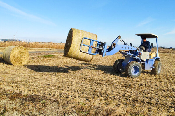 乾燥している行田市の特性を活かして、稲わらロールを生産。飼料高騰が続く近年、国産のわらの需要に応えて畜産農家さんに出荷しています。
