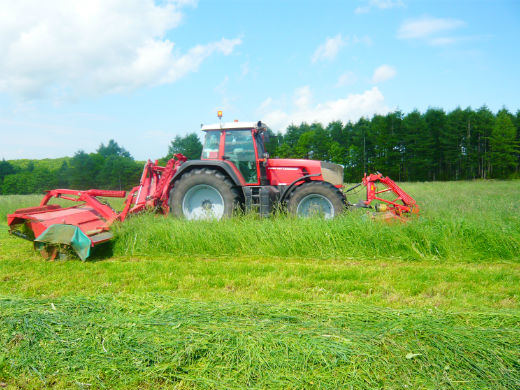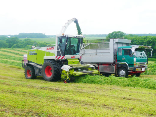 私たち中標津(なかしべつ)ファームサービスでは、牛の飼料製造事業・酪農ヘルパー事業(休みが取れない酪農家に代わって搾乳業務などを代行)・コントラクター事業(牧草収穫作業などの草地管理全般)を主に行っています。