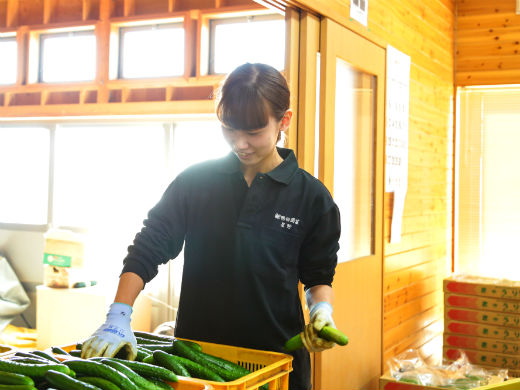 きゅうりやキャベツをはじめとした野菜の植え付け、収穫や出荷準備などをお任せします。一から親切に教えますので、農業の経験や知識がなくても問題ありません。また、収穫した野菜は持ち帰りOK!自分で育てた野菜を自分で食べる、農業ならではの喜びと達成感が味わえます◎