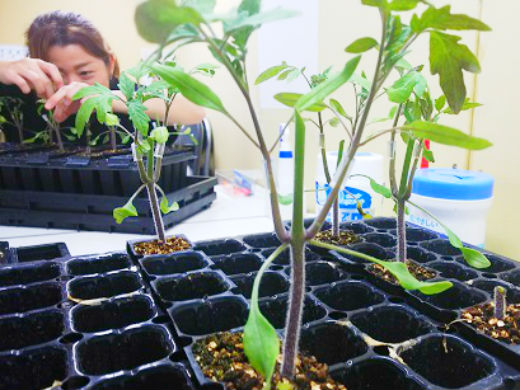 今回の仕事では、「接ぎ木苗」作りの技術も学んでいただきます。接ぎ木苗とは、植物の芽や枝を切り取り、根がある方の植物(台木)に別の植物(穂木)を接ぎ合わせた苗で、病害虫に強いという特長があります。難しそうに感じるかもしれませんが、一定期間集中して練習すれば習得できる技術です。