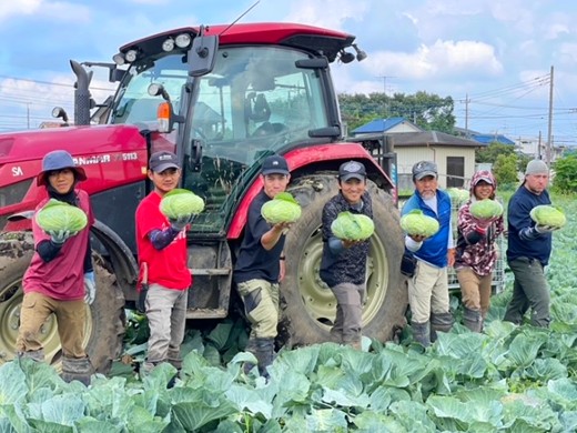 私たちの農場は群馬県邑楽郡邑楽町にあり、町の特産品である白菜やキャベツ(冬場)、ゴーヤ、ナス(夏場)を育てています。自然に恵まれていながら、東京までのアクセスもよく生活しやすい環境ですよ。最近ではいちごの栽培にも挑戦し、観光農園化に向けて準備もしています。また、連作障害を防ぐために輪作を行い、現在までに土壌消毒は一度も行っていません。独自のブレンド肥料や菌体管理を活用し、さらには害虫の天敵を投入するなど、できる限り減農薬で野菜を育て、安心安全な野菜を皆様へお届けしています。