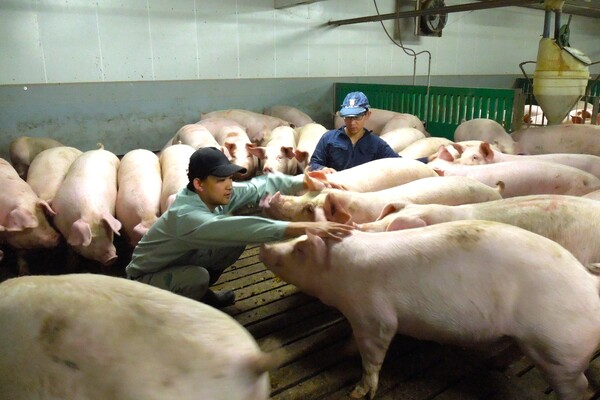 朝は8:00から作業が始まります。1頭1頭豚の体調を確認し、給餌や掃除などを行っていただきます。週に1度は体重測定を行い、出荷のタイミングを確認するなどの業務もあります。初めはベテラン職員と一緒に行っていただきますので、無理なくスキルを身に着けることができます。