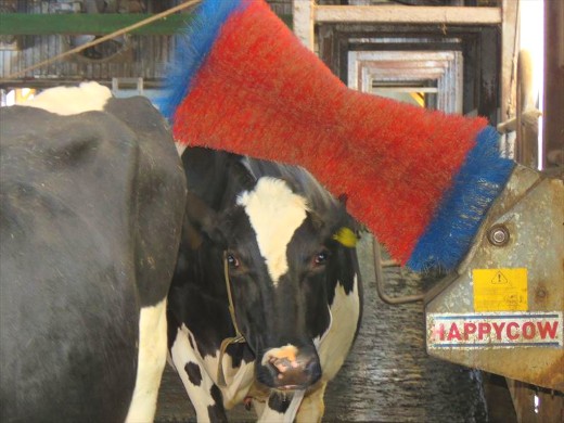 ミルキングパーラー(搾乳専用施設)は、牛を斜めに並ばせて搾乳を行う「ヘリングボーンパーラー」を採用しています。牛に対して近い位置で作業ができるため、一頭一頭をよく観察することができます。また、ミルカーと呼ばれる搾乳機と乳頭を着けるだけで簡単に搾乳ができ、仕事量軽減になります。