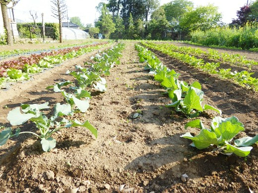 当社では季節に応じてさまざまな野菜を生産しています。収穫した野菜は蓮田市内の学校給食にて使用されるほか、地元のスーパー、そして蓮田市サービスエリアの地場野菜コーナーでも販売されています。子どもたちをはじめさまざまな方たちに楽しんでいただけるため、とてもやりがいがあります。