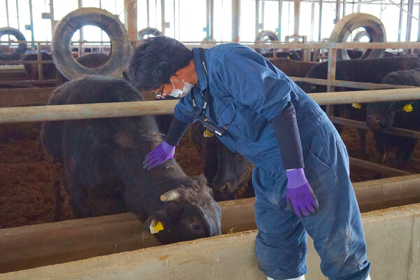 安心安全な食肉提供のため、病気の予防や早期発見・早期治療を徹底。牧場内の衛生を保つために、場内通路は清掃のしやすい全面アスファルト、牛床の敷料もこまめに交換し、常に清潔な環境を保つ努力を続けています。