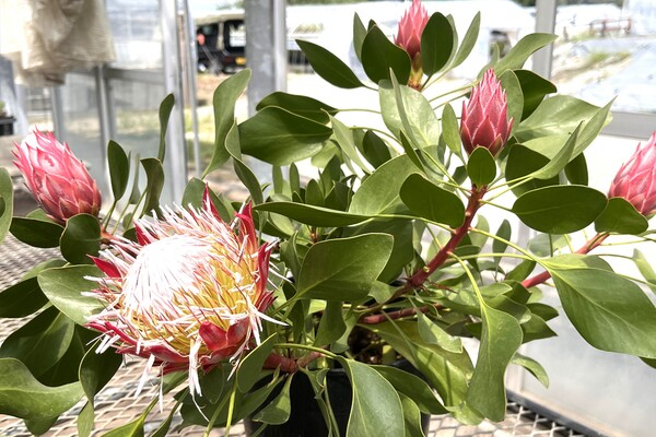 プロテア、セルリア、バンクシア、リューカデンドロンなどの観賞用植物を花が咲くまで育て、販売を行っています。
