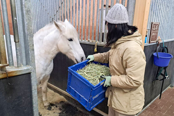 一方で、言葉を話すことができない馬が相手なので、様子や身体の状態を常に気に掛ける必要があります。慣れてくると作業も単調になりがちですが、馬にも人間と同じように個性があります。それぞれの個性や些細な表情の違いがわかるようになると、また違った楽しさ、やりがいが生まれてきます◎