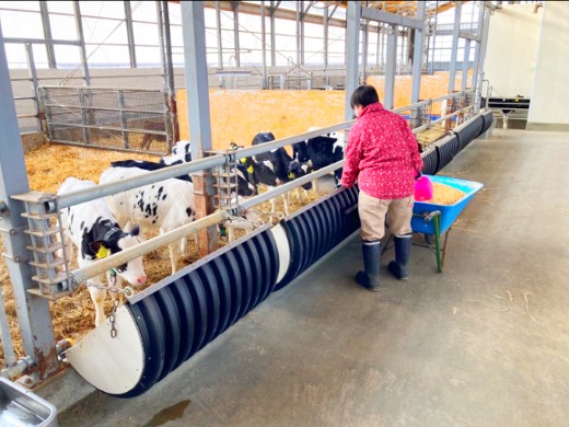 預かっている仔牛の哺育、ミルク配合、哺乳、徐糞掃除、寝藁の管理、見回りなどを行っていただきます。預かっているのは、体調が変わりやすい生後3ヶ月~7ヶ月の仔牛。些細な変化に気付き、細やかなケアができる方にぴったりの仕事です。こういった仕事の特性上、当社では女性も活躍中です。