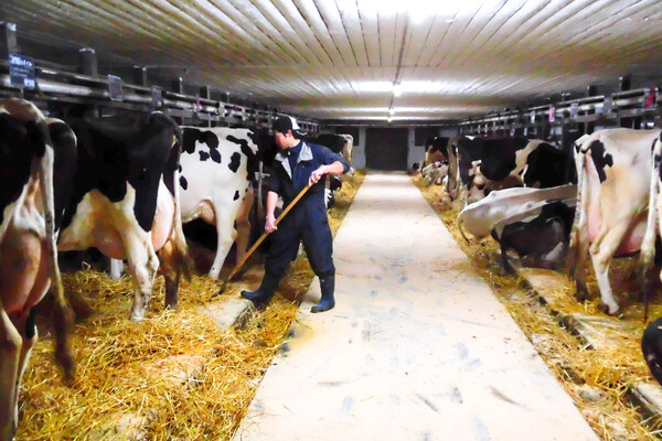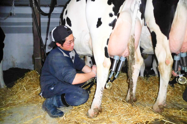 主な仕事内容は、搾乳、エサやり、牛舎の清掃など。