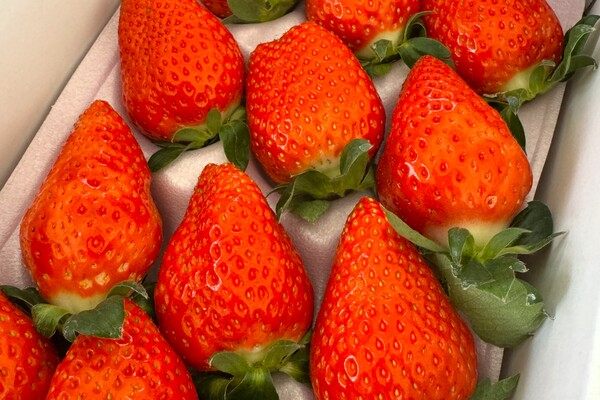 「紅ほっぺ」「章姫」「かおり野」など人気品種のいちごを栽培。また、白い果肉が珍しい「エンジェルエイト」や日本では希少な「ソフィア」など、特別な品種も手がけています。これらのいちごは甘味と酸味が絶妙なバランスで、観光客から高評価をいただいています。