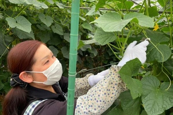 きゅうりの収穫・箱詰め作業をお任せします。収穫したきゅうりは持ち帰ることもできます!休憩はこまめに取得し、協力し合って作業をしていきますので、未経験の方も長く活躍いただける環境です。