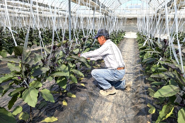 おいしさを日々探求しながら、こだわりを持って「鶴丸」という人気のある長卵系の品種のナスを栽培しています。