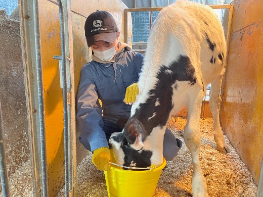 給餌、搾乳、清掃など酪農に関する業務を一緒に行っていただきます。小規模な牧場のため、作業はとてもシンプルです。少しずつできることを増やしていきましょう。