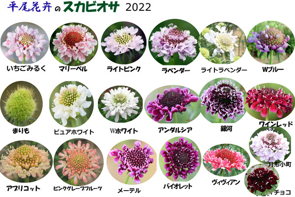 こだわりの色合いや形を追求して生まれた当農場オリジナルのスカビオサ。「まりも」や「銀河」などユニークな名前のほか、開発当時のアルバイトさんの名がついた「園子」も!あなたのアイデアや存在が、未来の新しい花に名前を刻むかもしれません。