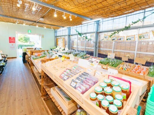 交流事業では、「農業の魅力・可能性をたくさんの人へ」をテーマに、苺や野菜を生産し収穫体験をしています。また、生産現場から納品される花や野菜苗の直売、近隣農家さんの野菜直売、野菜を使ったパスタ・ピザ・パンやデザートの提供をしています。
