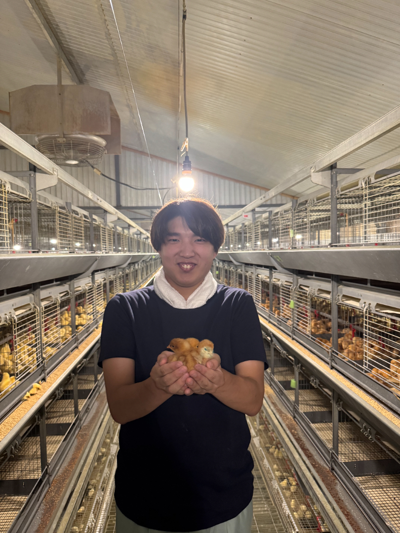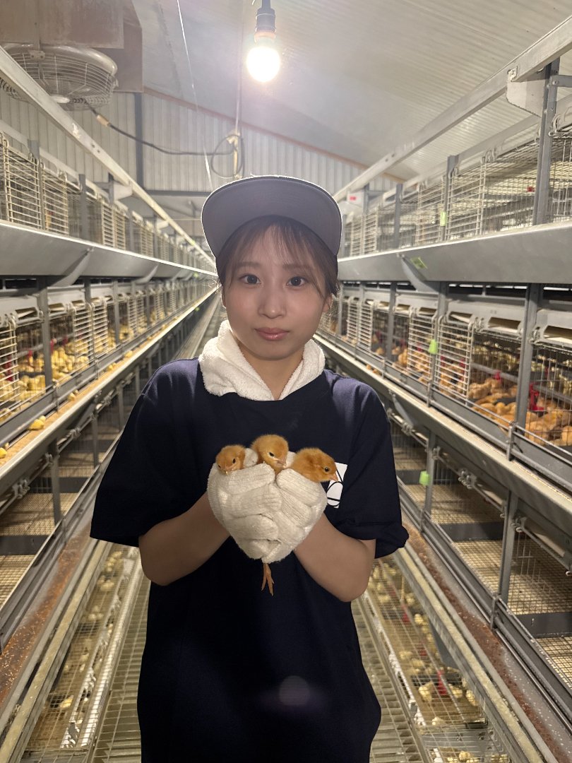 地元の農業高校から職場前見学に行ったことがきっかけで入社しました。鶏舎の規模や設備など圧倒されることが多いですが、鶏の成長を間近で見られ、想像以上のやりがいを感じています。同年代の方も多くて毎日がとても楽しいです。
