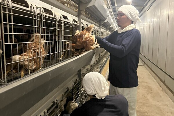 仕事内容は、主に「ひな」を「にわとり」に育てるお世話や掃除、育った「にわとり」をお客さまの所に運ぶ作業。ほとんどの社員が農業未経験から始めて、実際の仕事をしながら経験を積んでいます。